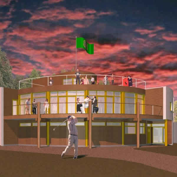 overlooking the first tee and a roof